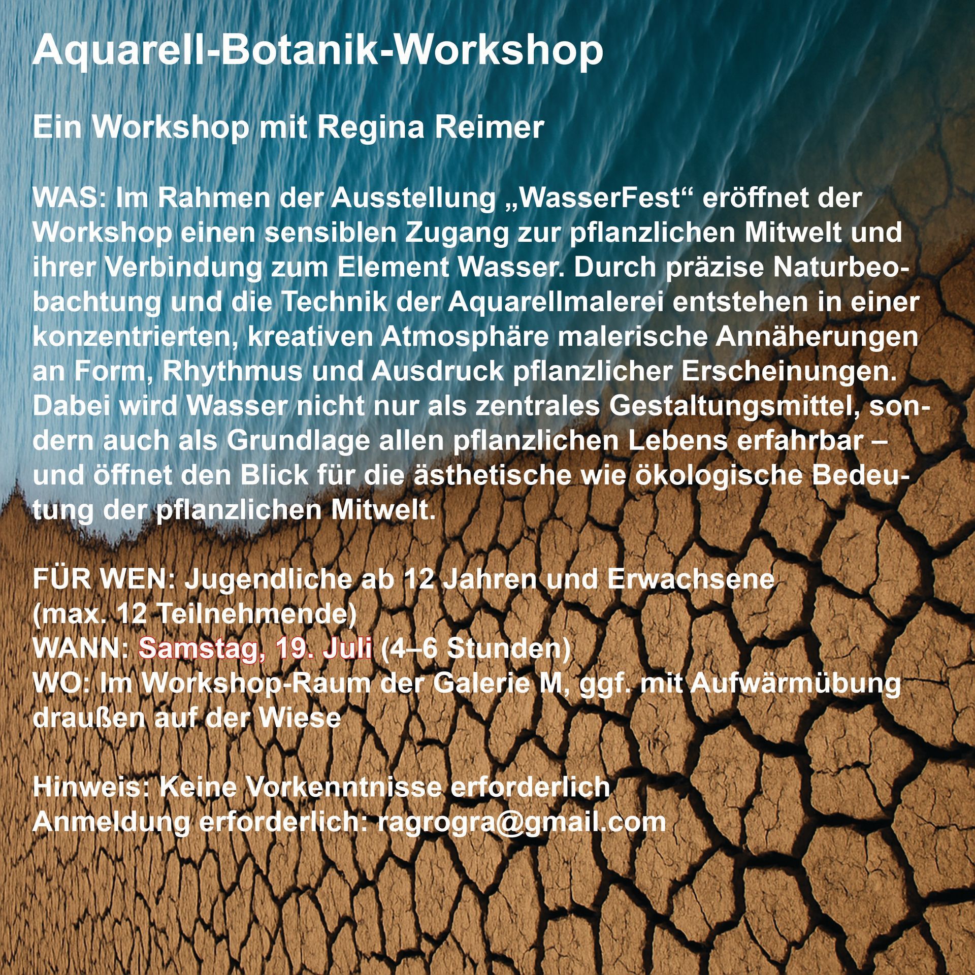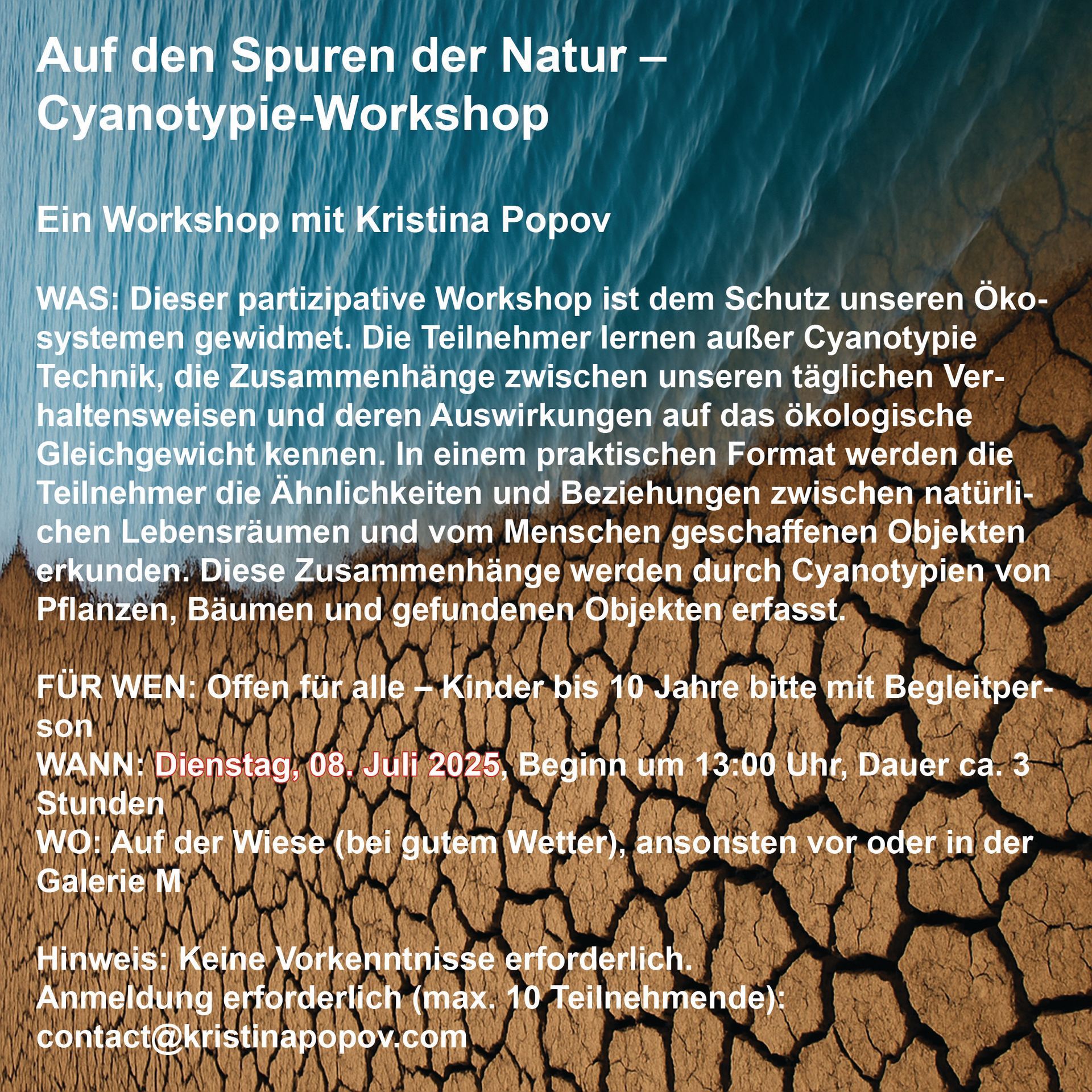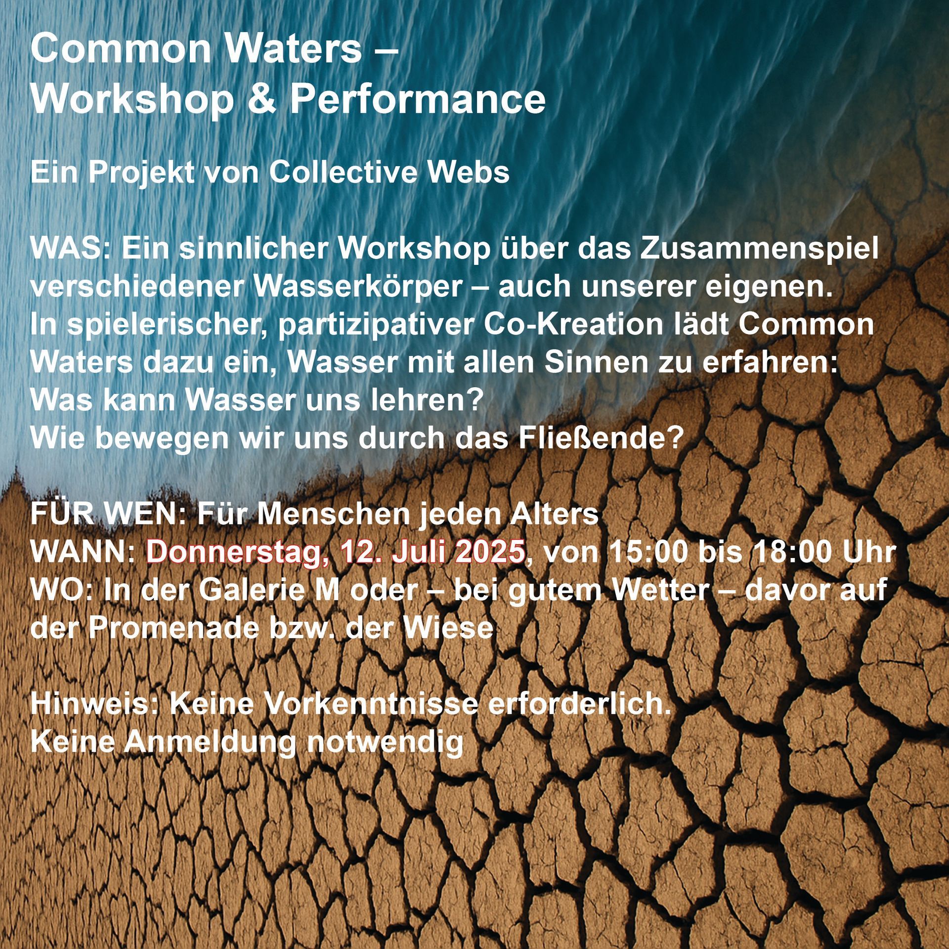 Die Gruppenausstellung “WasserFest” im Projektraum Galerie M setzt sich durch eine Vielzahl an Medien und künstlerischen Perspektiven mit der Rolle von Wasser in seinen Erscheinungsformen auseinander, sowohl auf physischer als auch auf metaphorischer Ebene. Wasser ist überall auf der Erde zu finden, von riesigen Ozeanen bis hin zu den Wolken. Diese klare, geschmacklose und geruchlose Flüssigkeit ist für alle Lebensformen entscheidend. Seine Fähigkeit, viele Substanzen zu lösen, macht es zu einem unverzichtbaren Bestandteil der Natur und des Lebens. Die Erwärmung der Erde führt zu veränderten Niederschlagsmustern und häufigeren Dürren. Der Anstieg des Meeresspiegels bedroht zudem küstennah gelegene Wasservorkommen und verursacht die Versalzung von Grundwasserquellen. Klimawandel, Wasserknappheit,
