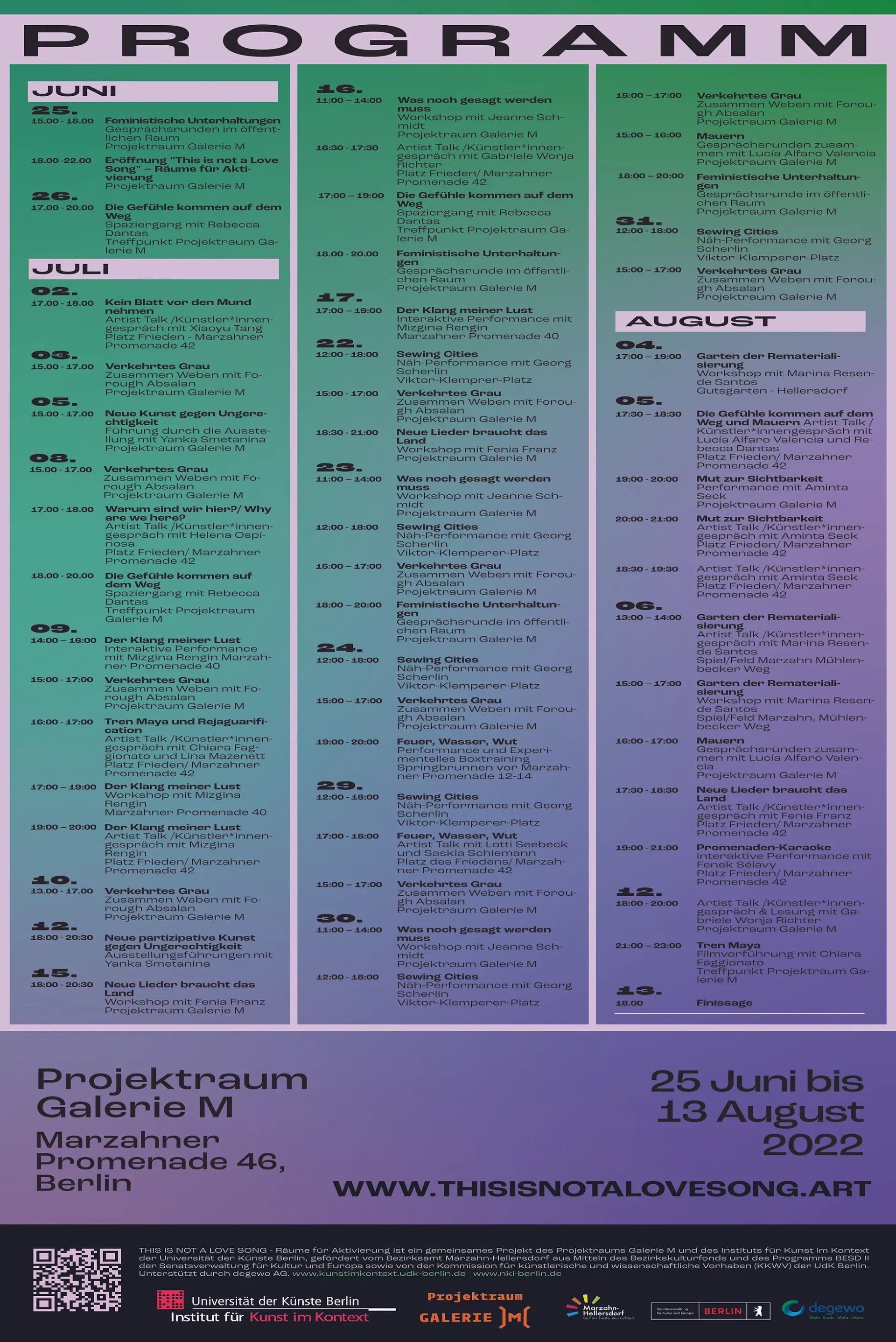 This is Not a Love Song – Räume für Aktivierung ist ein partizipativer künstlerischer Parcours in progress auf der Marzahner Promenade, der öffentliche und soziale Räume angrenzend an den Projektraum Galerie M in Marzahn aktiviert.
